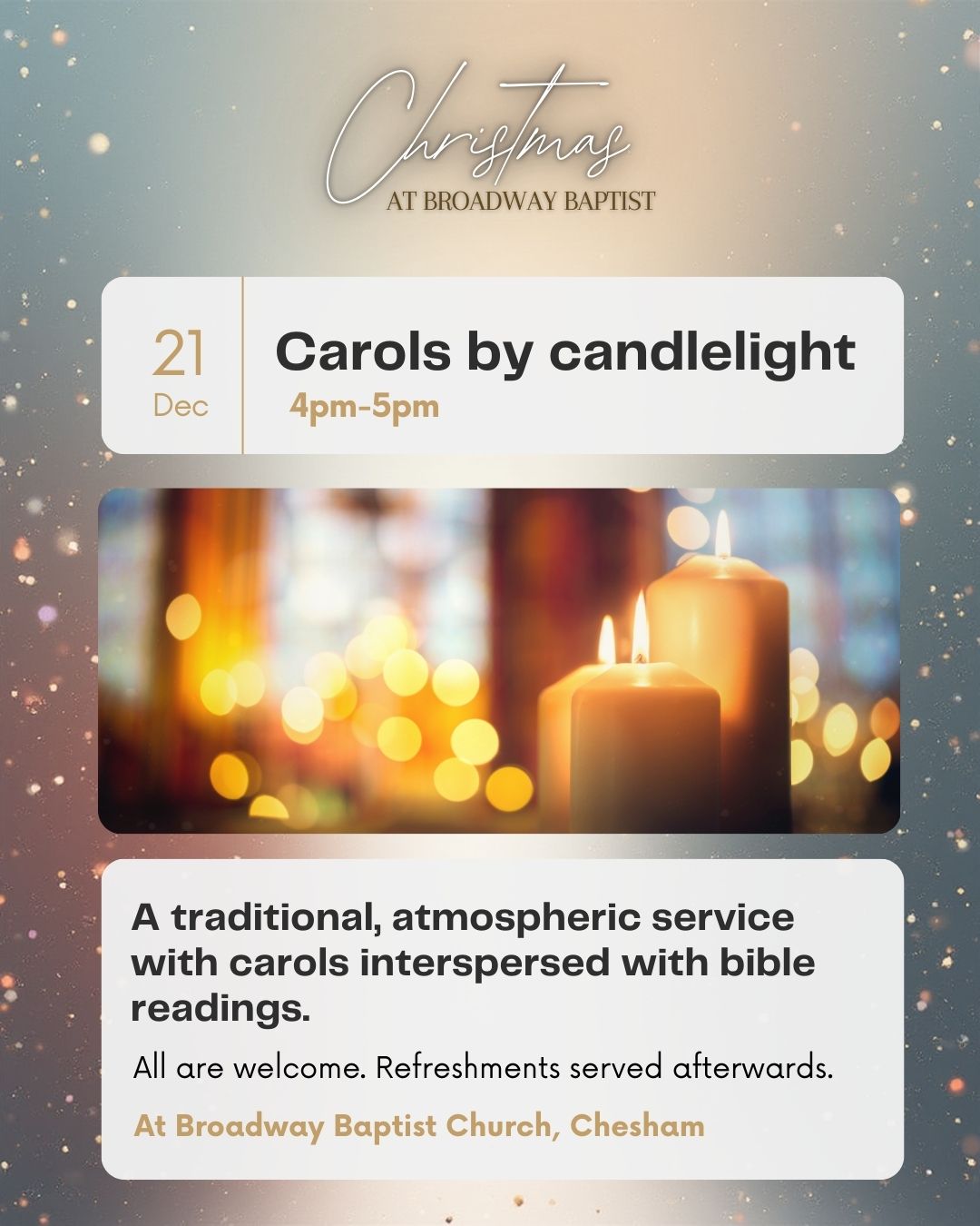 Join with us to celebrate this Advent and Chistmas. Everyone is welcome; whether you come to church regularly or hardly ever.
